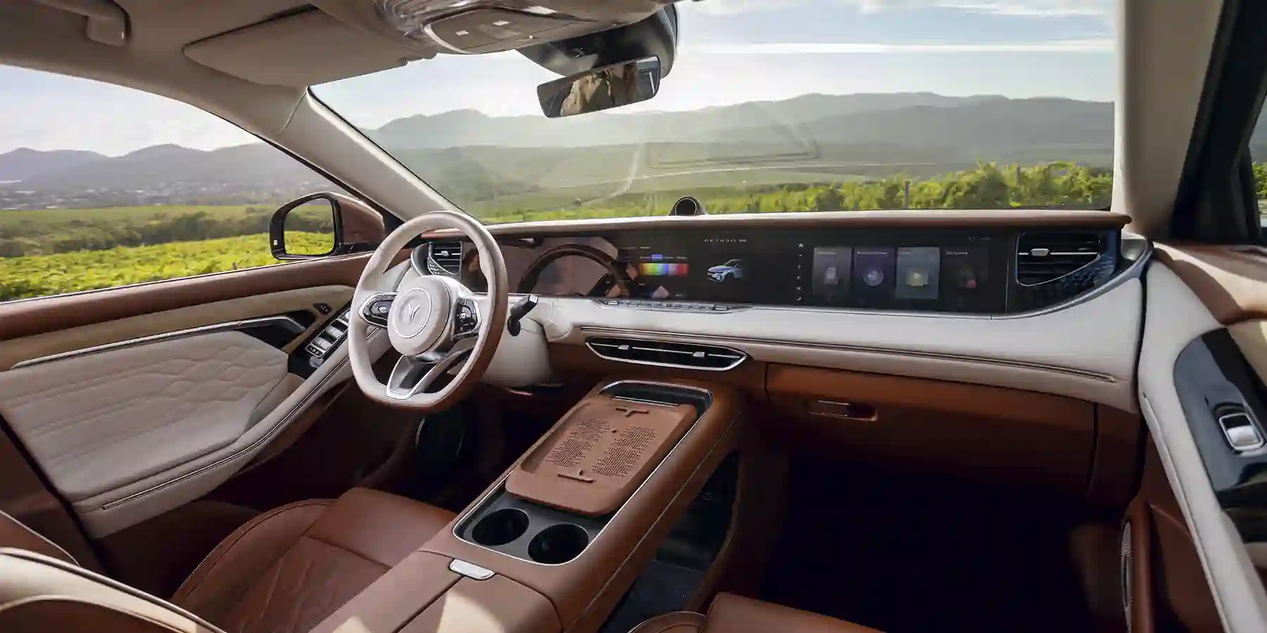 В салоне меня особенно обрадовала одна деталь: убрали слегка чужеродный рычаг АКПП на рулевую колонку. На его месте соорудили большую площадку с беспроводной зарядкой под пару смартфонов. На передней панели у нас целых три экрана: эту опцию мы получали в первой же итерации VOYAH FREE, но не хватало внятной русификации. Теперь всё ясно, теперь всё по-русски. Более того, обновлять и дополнять мультимедийку можно через приложение VOYAH, тут вам и «Кинопоиск», и прочие сервисы «Яндекса», главный из которых — конечно же, навигация.
