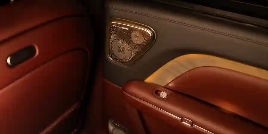 Архитектура салона объединяет переднюю и заднюю части в стильно оформленное пространство, создавая атмосферу физического и эмоционального спокойствия. Эффектная контурная подсветка и формы элементов интерьера отражают сдержанную восточную эстетику и высокую роскошь.